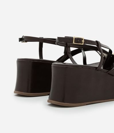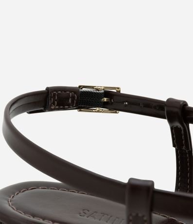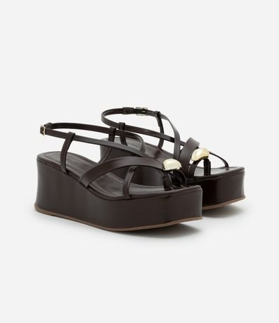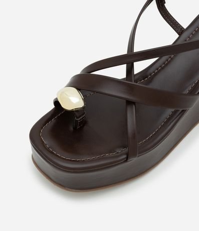 Ref: Sandália feminina flatform, bico quadrado com alças finas, dedeira com detalhe bold e salto médio.