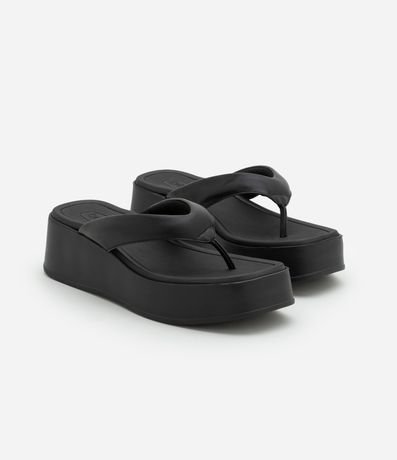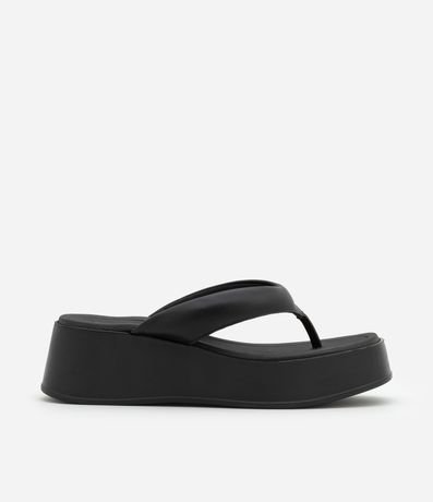 Sandália flatform chinelinho feminina, confeccionada em PU, com salto médio.