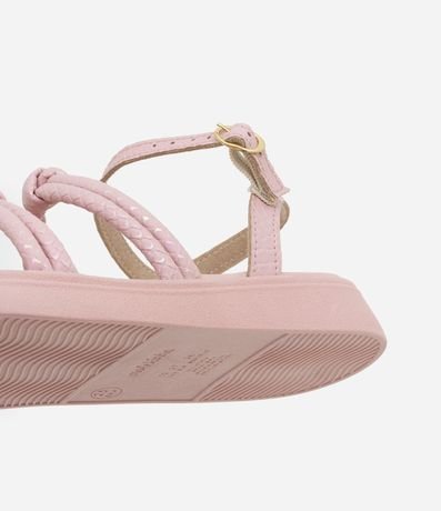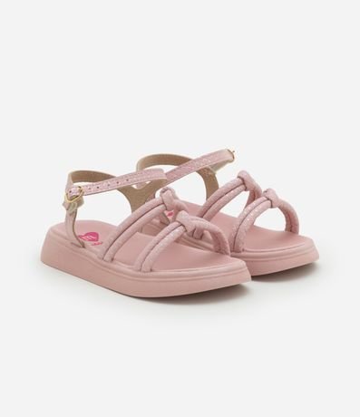 Ref: Sandália infantil confeccionada em PU, com tiras finas texturizadas e detalhe de nózinho. Possui fechamento por fivela no tornozelo.