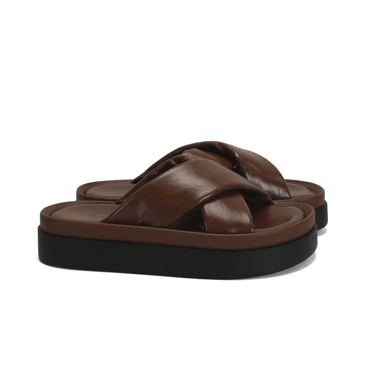 Flatform Tiras X Super Confort Napa Café Solado 4,5cm Ana Mello