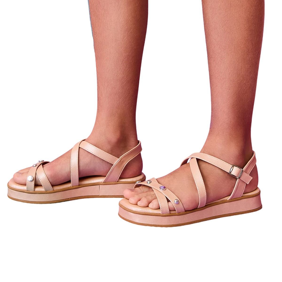 Cheia de atitude, essa sandália flatform nude rosada com efeito perolado é a escolha perfeita para quem quer brilhar nas tendências da temporada!