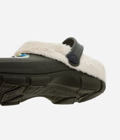 Sandália infantil estilo babuche confeccionada em PVC com interior forrado em pelinhos supermacios. Modelo fechado na frente com furos que garantem ventilação, tira traseira articulada e apliques divertidos no cabedal, criando visual lúdico e confortável para o dia a dia dos pequenos.