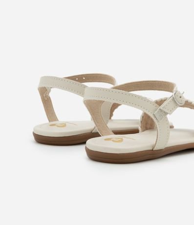 Sandália infantil com bico redondo, com tiras e detalhe de tira trançada com brilhos. Possui fechamento no calcanhar por fivela e solado com frisos antiderrapantes.