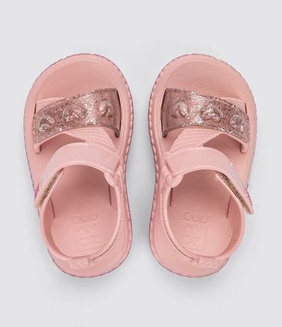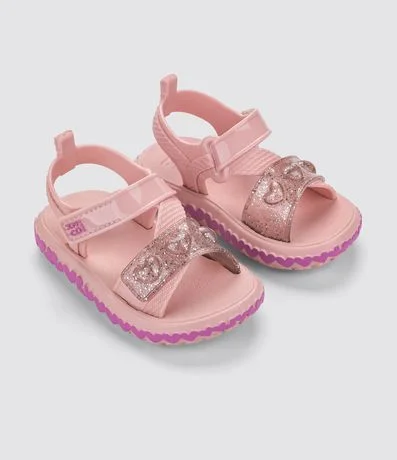 Ref: Sandália infantil confeccionada em material sintético PVC, com bico redondo e multitiras. Possui solado confortável, fechamento por velcro e detalhes de corações e brilho.