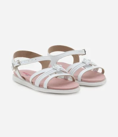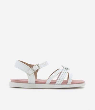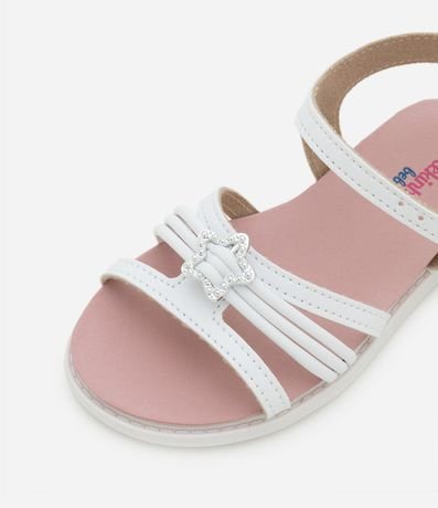 Ref: Sandália infantil de modelo rasteira, com bico redondo e tiras finas. Possui detalhe de fivela de estrela fechamento com fivela.