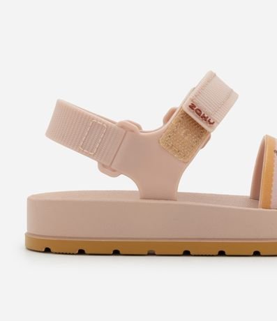 Ref: Sandália moderninha Zaxy para bebês. A peça tem fechamento por velcro e tira superior com estampa de capivarinhas fofas.