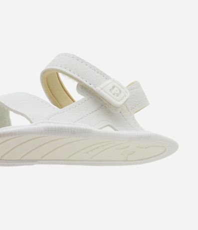 Ref: Sandália infantil confeccionada em PVC, possui bico redondo, costuras contrastantes, tiras e fechamento por velcro.