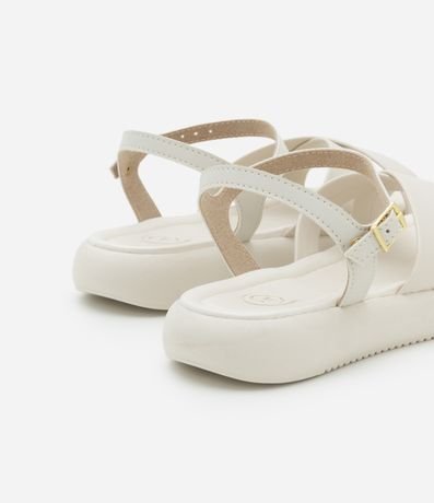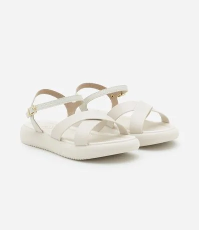 Ref: Sandália infantil em PU com fechamento no tornozelo, tiras em cruzadas e solado flatform.