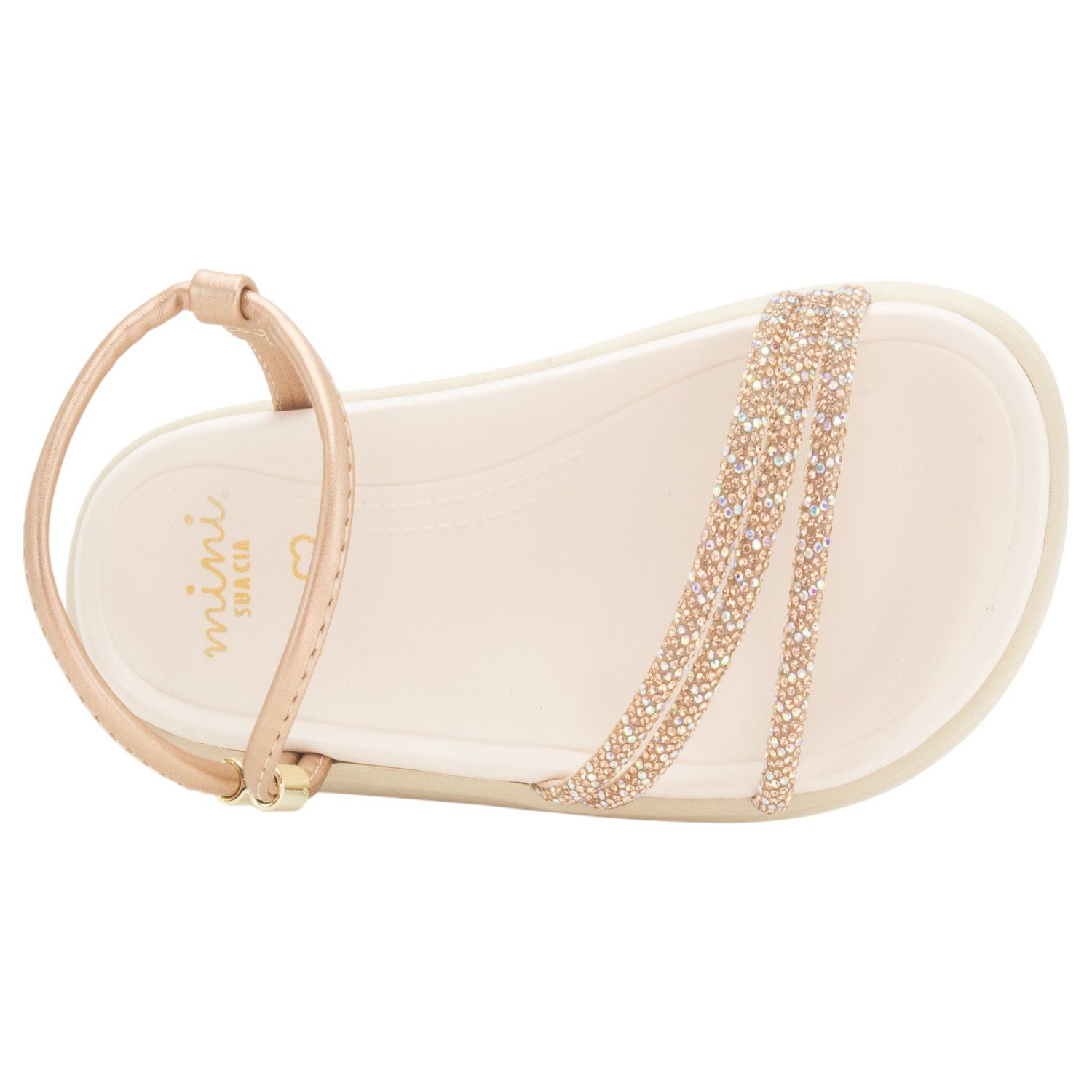 A Sandália Infantil Mini Sua Cia Brilhantes é confeccionada em napa perolizado na cor cobre, trazendo tiras delicadas com pedrarias cintilantes, fechamento ajustável e salto de 3,5 cm que garante charme e conforto para as pequenas. Com design encantador, é perfeita para compor looks elegantes e cheios de brilho em qualquer ocasião. Referência 9158-52120. Inspirados no universo lúdico das crianças, os modelos da Mini Sua Cia e Baby são criados para acompanhar as pequenas em todos os momentos, oferecendo estilo, conforto e qualidade em cada passo.