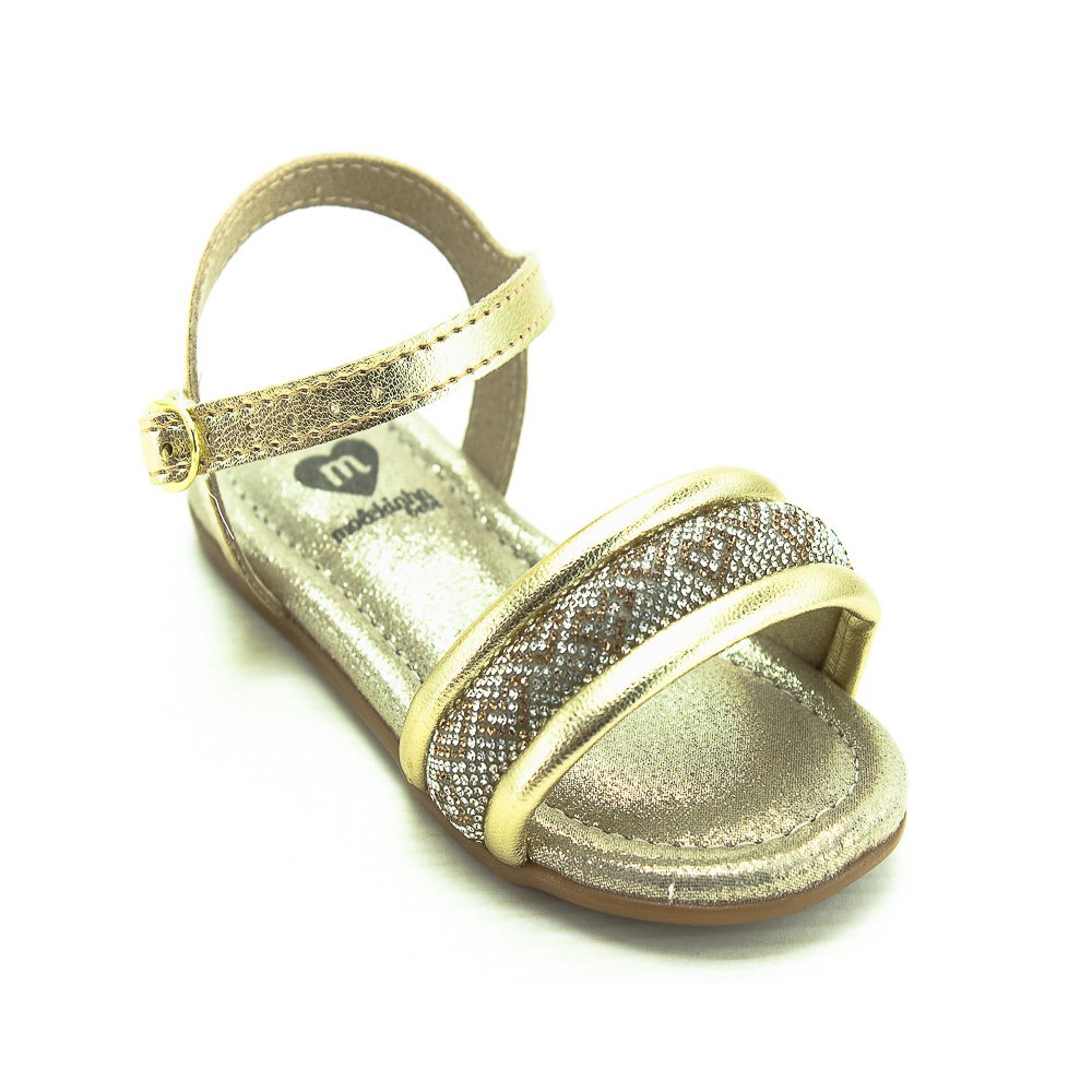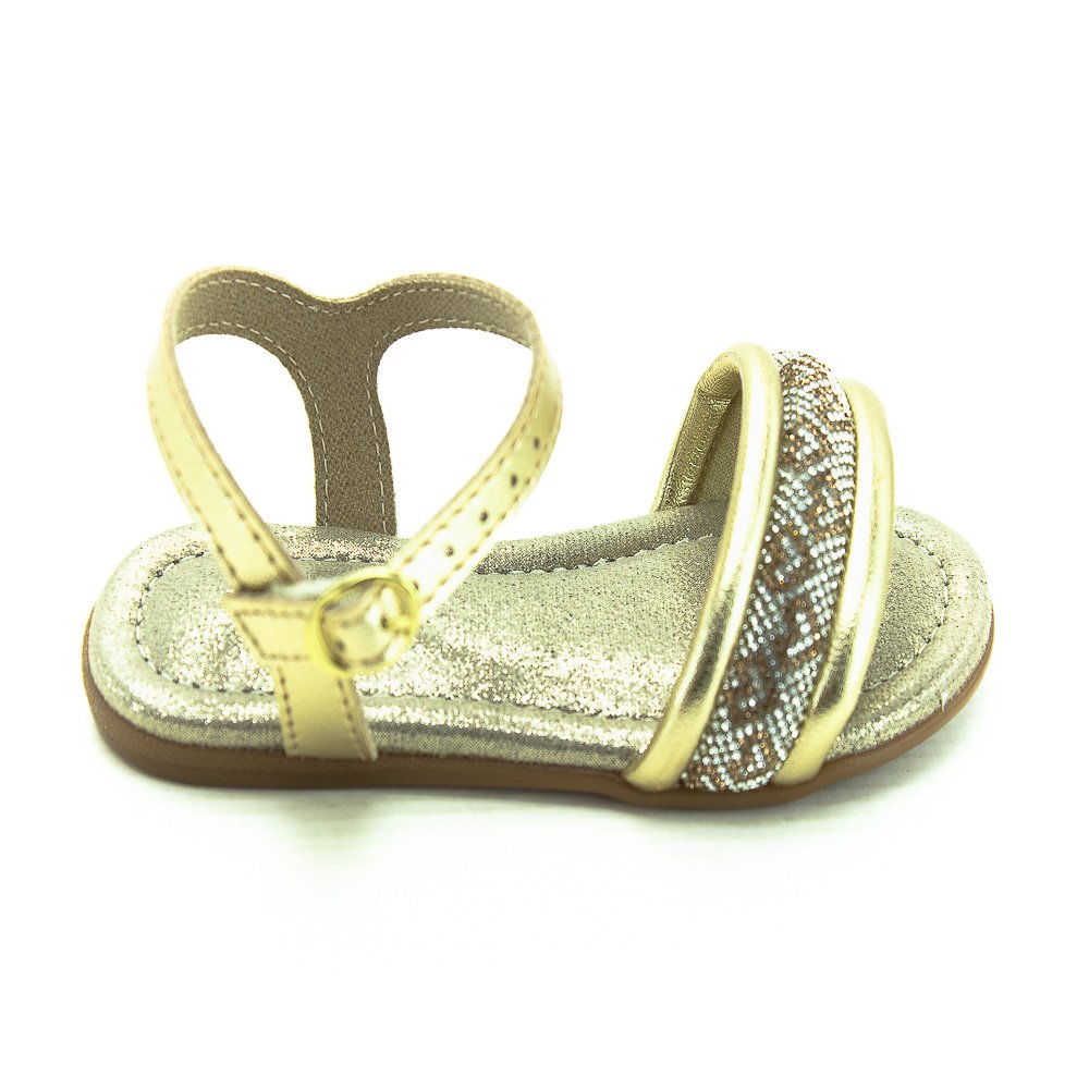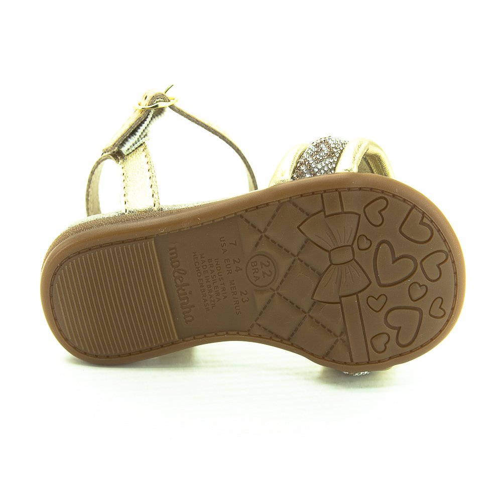 Ref: A Sandália Molekinha Rasteira Infantil Menina Strass 2114.280 possui cabedal confeccionado em material sintético com aplicação de strass em formato de corações, que proporciona brilho e estilo. As tiras são finas, delicadas, e se cruzam sobre o peito do pé. A palmilha é acolchoada, oferecendo conforto durante o uso. O solado é feito em borracha antiderrapante, garantindo segurança ao caminhar. O salto é rasteiro, ideal para crianças. A calcanheira é aberta e confortável, e o fechamento é feito por fivela ajustável. O bico tem formato arredondado e a abertura frontal facilita o calce. O acabamento é brilhante e o detalhe em strass agrega sofisticação. Essa sandália é perfeita para quem busca estilo e conforto para ocasiões especiais.