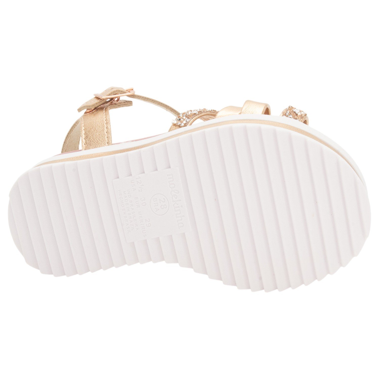 Ref: A Sandália Infantil Molekinha, com sua charmosa plataforma baixa de aproximadamente 2,5 cm, é a escolha perfeita para meninas que buscam unir estilo, conforto e um toque de sofisticação brilhante. Confeccionada em material sintético de alta qualidade no deslumbrante tom de Ouro Rosado, ela se destaca pelo seu design moderno de tiras cruzadas sobre o peito do pé. O grande diferencial está na combinação de tiras com um acabamento em glitter cintilante e tiras em material metalizado brilhante, criando um visual delicado e festivo, ideal para festas, passeios e momentos especiais. A plataforma em camadas (listras brancas e douradas) oferece uma leve elevação com total estabilidade, enquanto a palmilha interna macia e anatômica, na cor rosa suave (com o logo "Molekinha Fun"), garante conforto prolongado ao longo do dia. O modelo é fixado por uma tira de tornozelo com fivela ajustável, proporcionando praticidade ao calçar e um encaixe perfeito e seguro. Para passos ainda mais firmes, o solado externo branco possui ranhuras tratoradas que garantem excelente tração e segurança. Combinando leveza, durabilidade e beleza, este modelo Molekinha é versátil para compor desde looks casuais até produções mais festivas, acompanhando as pequenas com personalidade e muito brilho em todas as ocasiões.