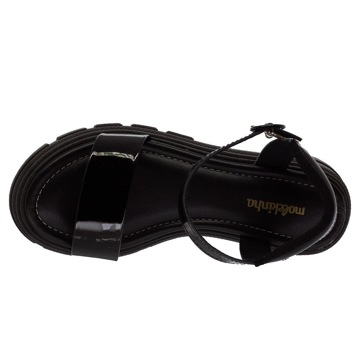 A Sandália Infantil Menina Molekinha 2350.101 Preta é linda! Confeccionada em material sintético, possui palmilha em material sintético, para maior conforto, possui fivela em seu cabedal, auxiliando no ajuste dos pés, solado em pvc TR, para maior segurança e detalhes em verniz que deixam o modelo ainda mais bonito.