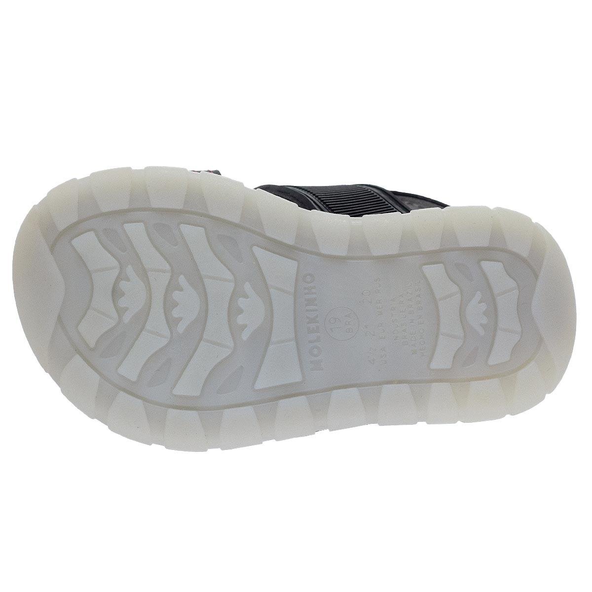A Sandália Infantil Menino Molekinho 2624.206 Preto é linda! Confeccionada em material sintético, possui fechamento por velcro, para facilitar o calce, palmilha em eva, para maior conforto, solado emborrachado com frisos antiderrapantes, para maior segurança e detalhe em vermelho e luzes coloridas na sola, o que deixa o modelo ainda mais bonito.