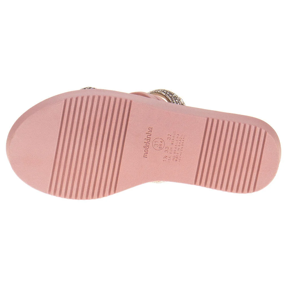 Ref: A Sandália Infantil Molekinha é confeccionada em Napa de alta qualidade com acabamento em costura, aplicação de strass no cabedal, palmilha em EVA ultramacio e solado em borracha antiderrapante.