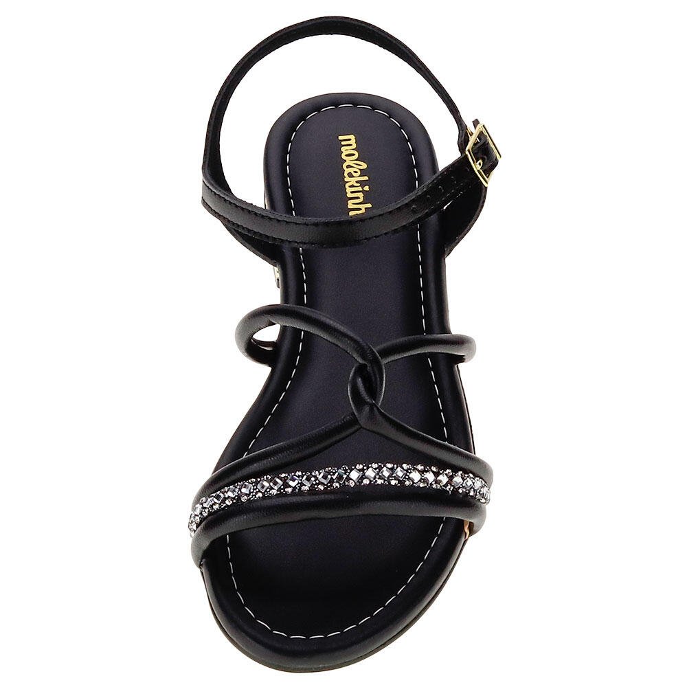 A Sandália Infantil Molekinha é confeccionada em Napa de alta qualidade com detalhes de brilho no cabedal e acabamento em costura. Esse modelo possui tira com fechamento por fivela, palmilha em PU e solado em borracha antiderrapante.