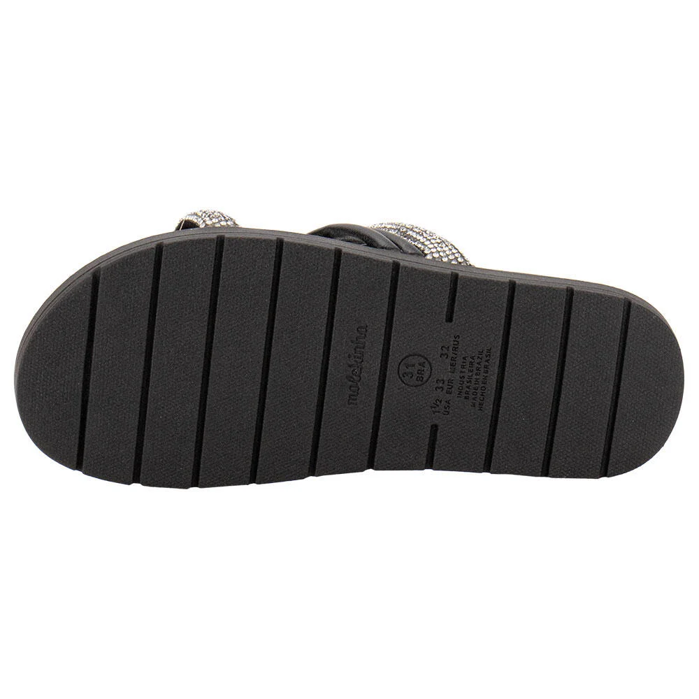 Ref: A Sandália Infantil Feminina Molekinha é confeccionada em material de alta qualidade com detalhe metalizado e aplicação de strass no cabedal. Esse modelo possui palmilha em EVA e solado em borracha antiderrapante.