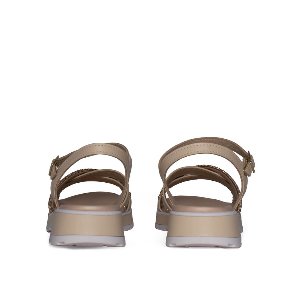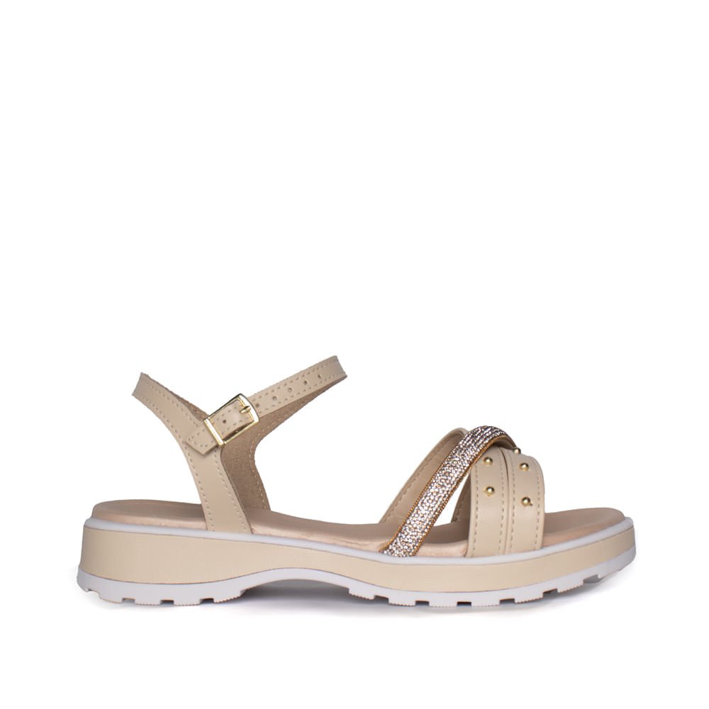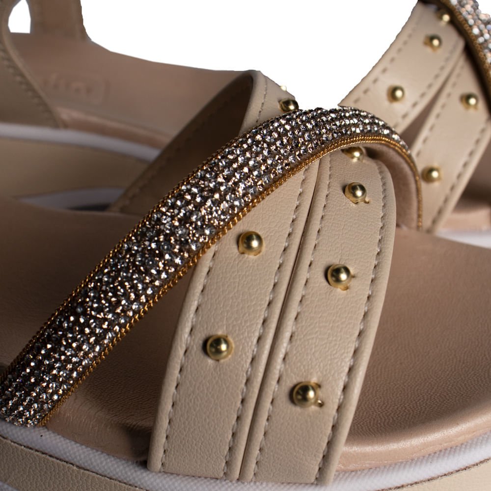 Ref: Confeccionada em napa sintética resistente, a sandália possui tiras frontais com glitter e strass, adicionando um toque sofisticado e lúdico ao visual. A palmilha macia em espuma oferece conforto prolongado, enquanto o fechamento em fivela garante ajuste seguro. O salto baixo de 2 cm em estilo plataforma contribui para a estabilidade, assim como o solado emborrachado com textura antiderrapante, proporcionando segurança em cada passo.