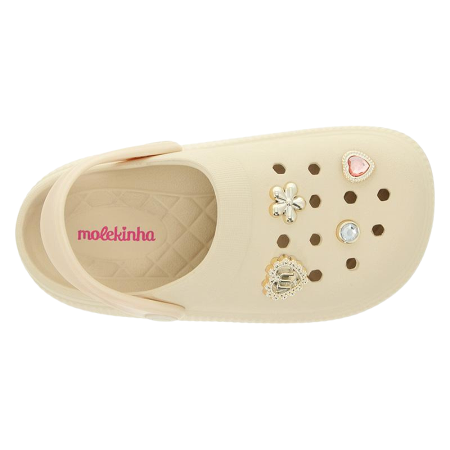 O Babuche Infantil Feminino é a escolha ideal para acompanhar os pequenos em todas as ocasiões. Desenvolvido em material leve e resistente, proporciona conforto, praticidade e ventilação graças ao design com furinhos no cabedal. O destaque fica por conta dos apliques decorativos, que tornam o calçado ainda mais divertido e estiloso.