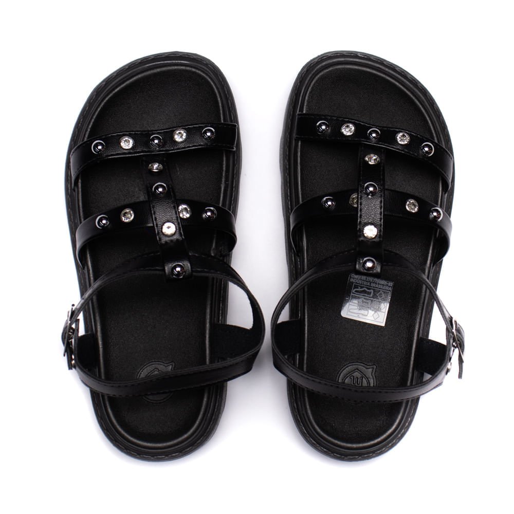 A combinação de sua sola elevada, detalhes de pedras e tiras maleáveis ¿¿criam um visual único que atrai olhares, enquanto a facilidade de calçar torna uma experiência agradável para as garotas.