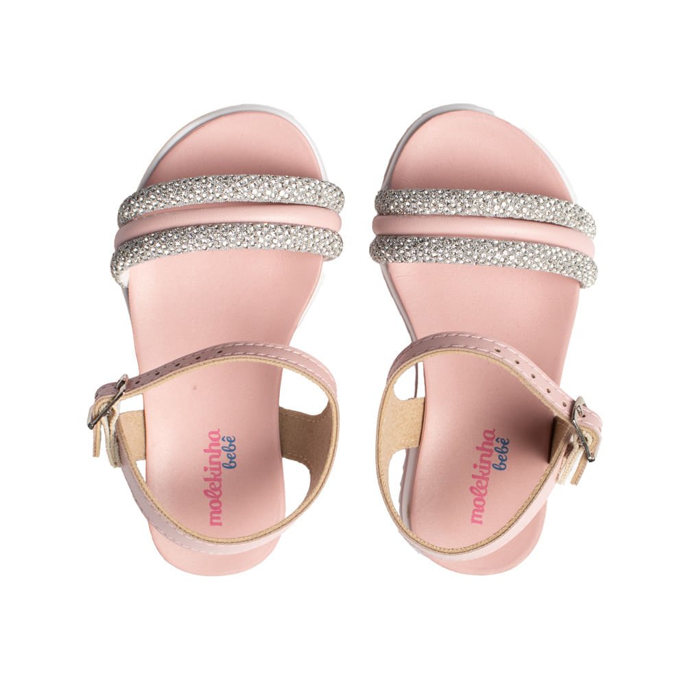 Sandália Infantil Molekinha Strass Napa Turim Rosa