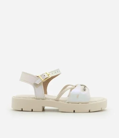 Ref: Sandália infantil confeccionada em material sintético, no modelo platform, possui bico redondo, fechamento por fivelas, coraçõezinhos na sola e laço frontal.