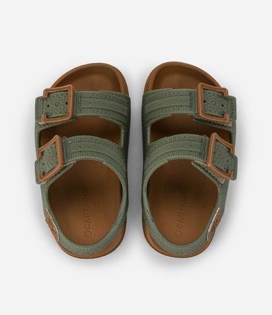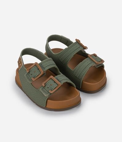 Ref: Sandália infantil confeccionada em material sintético PVC, com bico redondo e multitiras. Possui solado confortável e fechamento por velcro. Como diferencial, possui textura e 02 fivelas contrastantes.