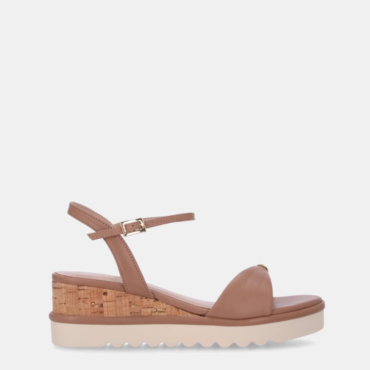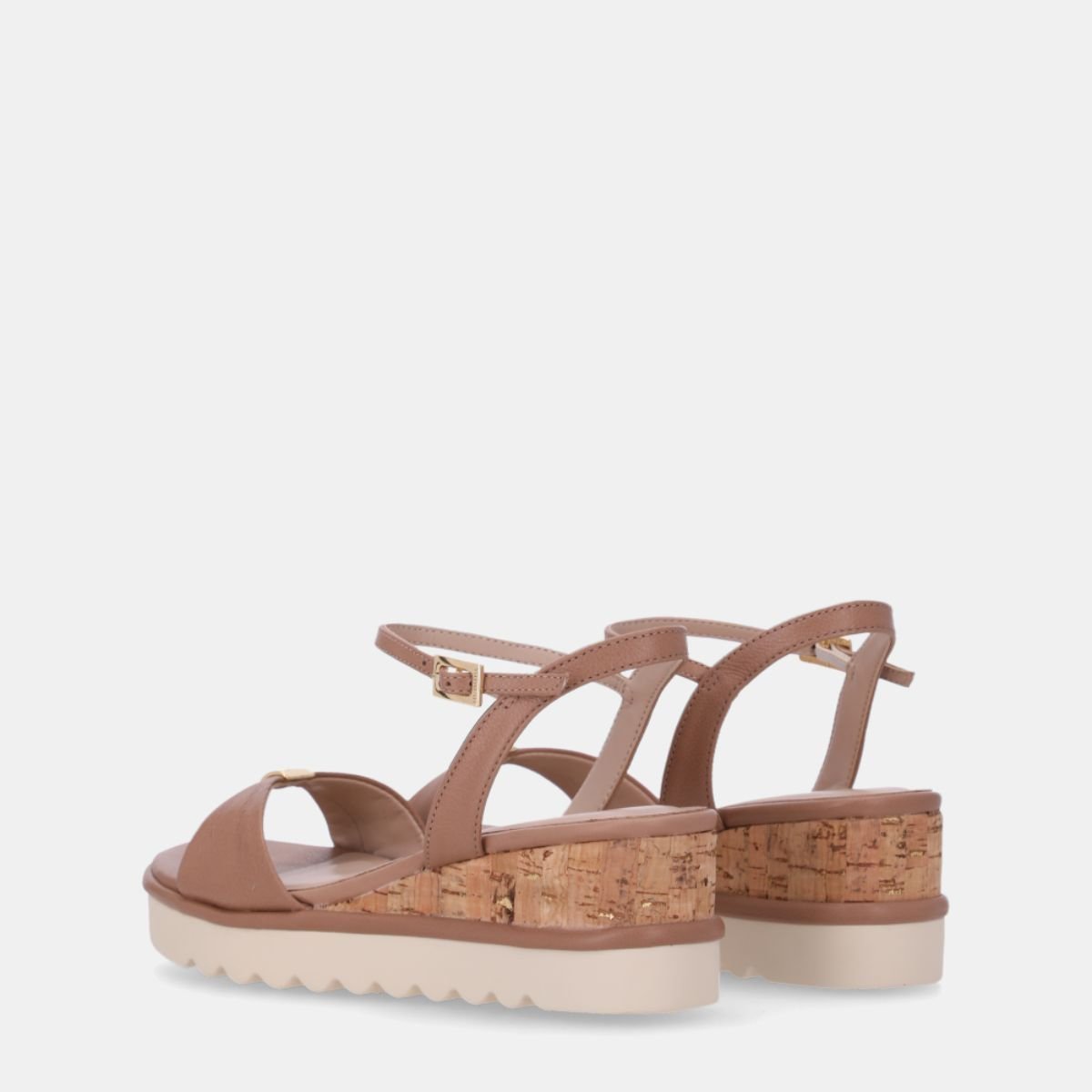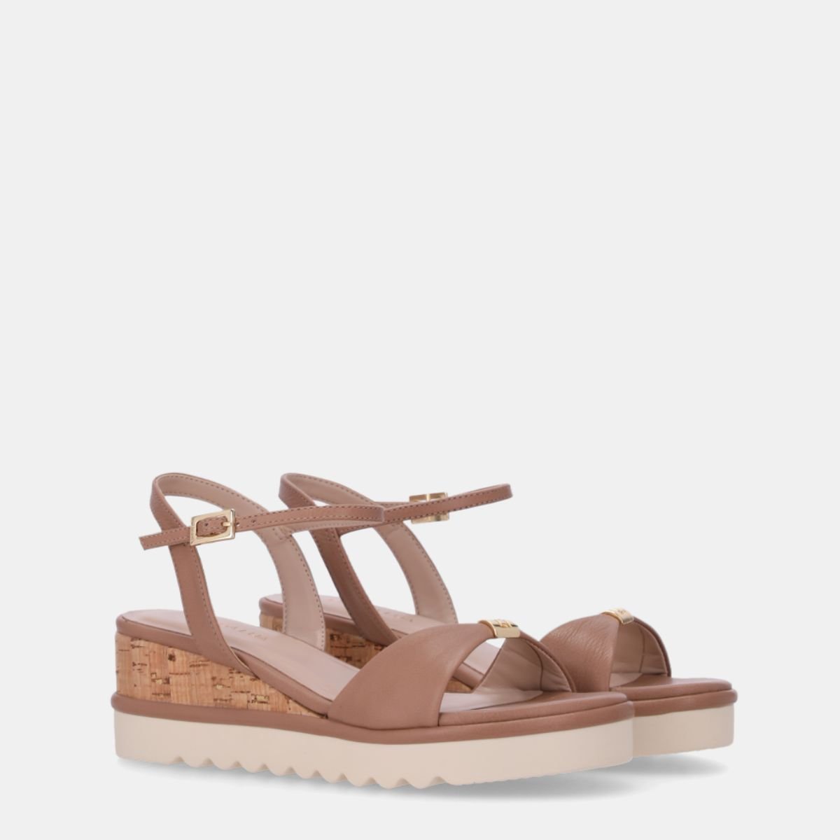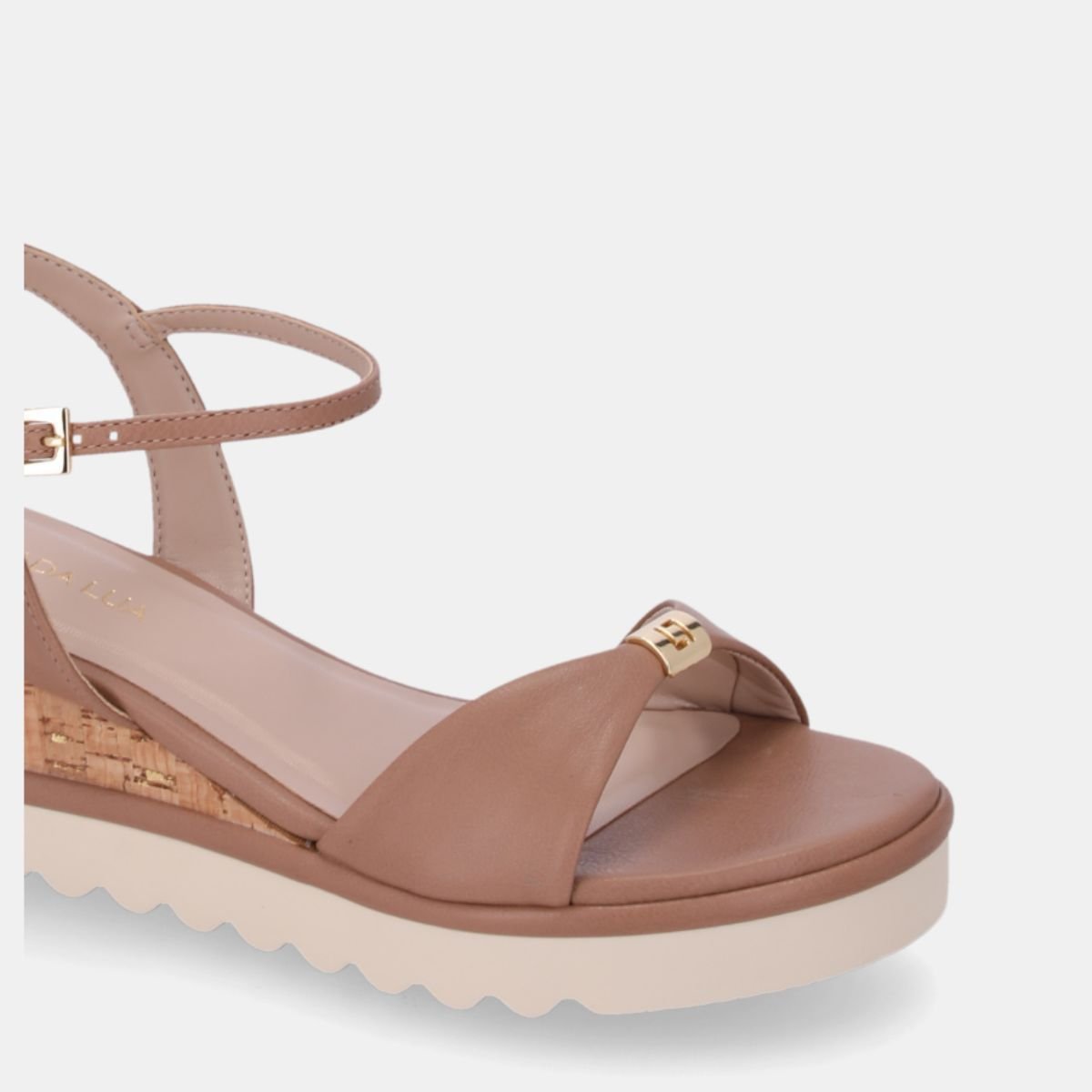 Com salto anabela baixo em cortica, garante leveza e modernidade ao look, enquanto o cabedal em tom neutro traz versatilidade para