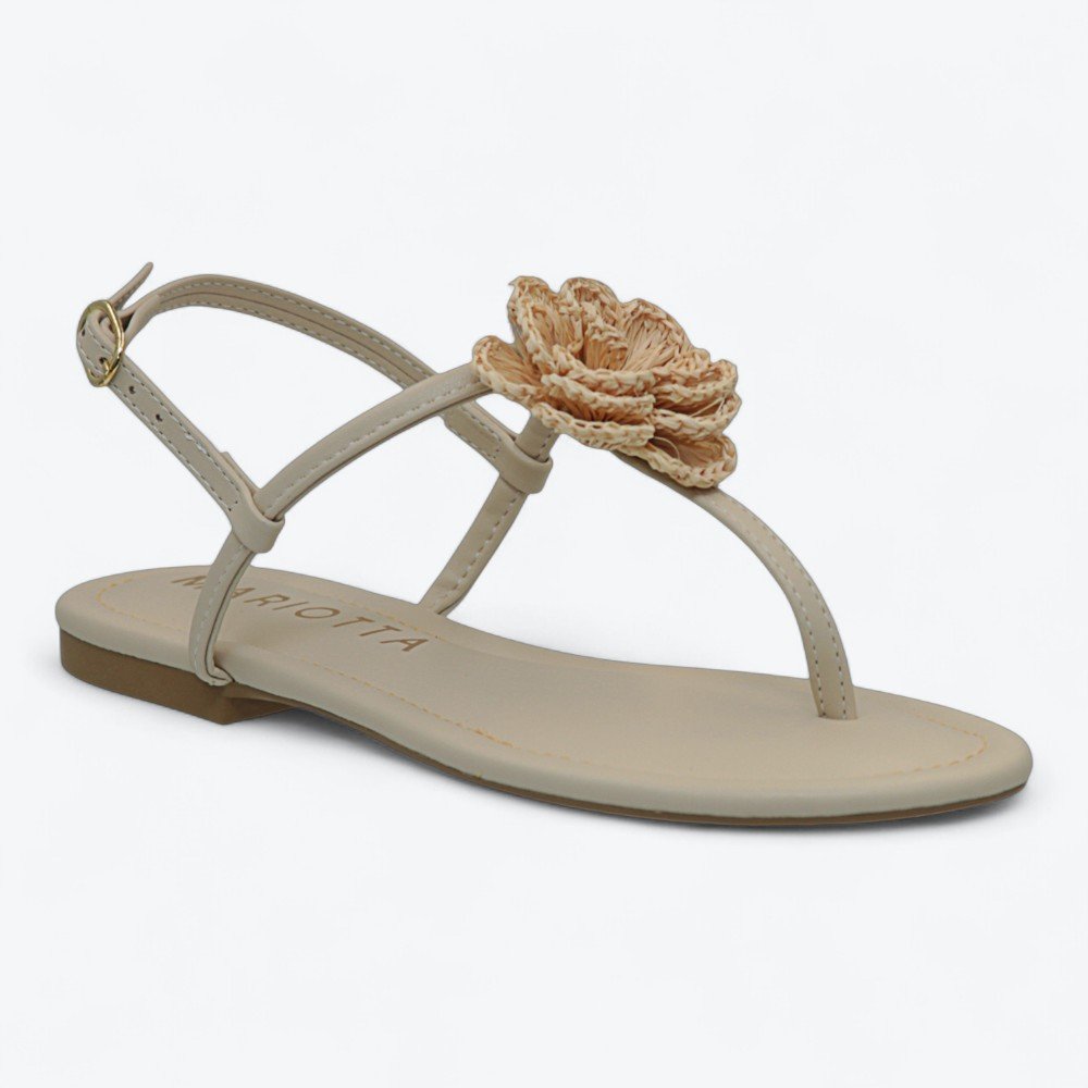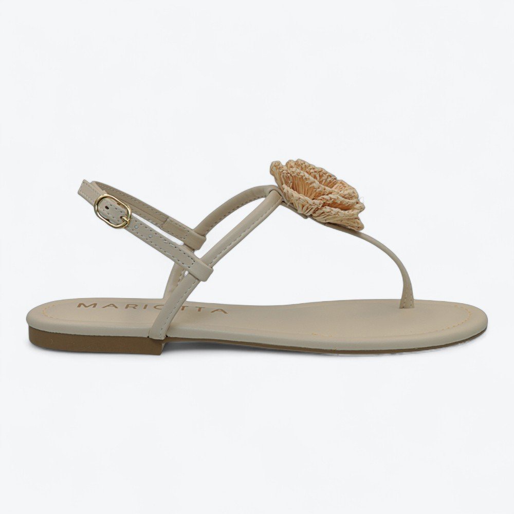 Ref: A sandália rasteira feminina da Mariotta foi desenvolvida para quem valoriza charme e conforto em um só calçado. Seu cabedal apresenta tiras finas e delicadas que envolvem o pé com leveza, enquanto a aplicação em formato de flor traz um toque romântico e sofisticado ao visual.