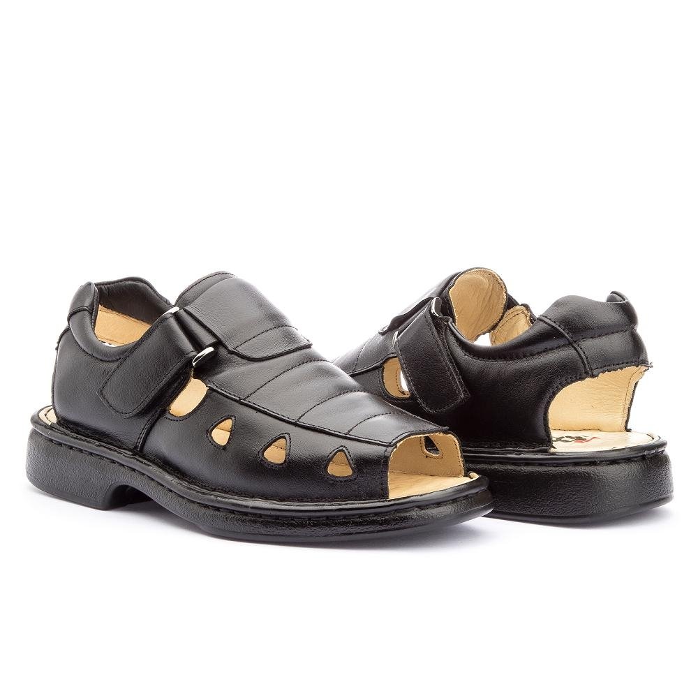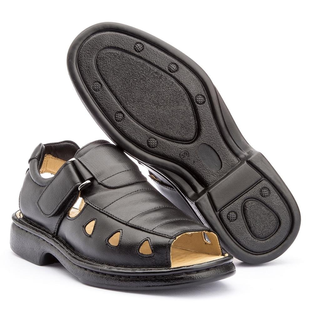 Sandália Masculina Em Couro Confort Gel em Couro Fecho Lateral Casual