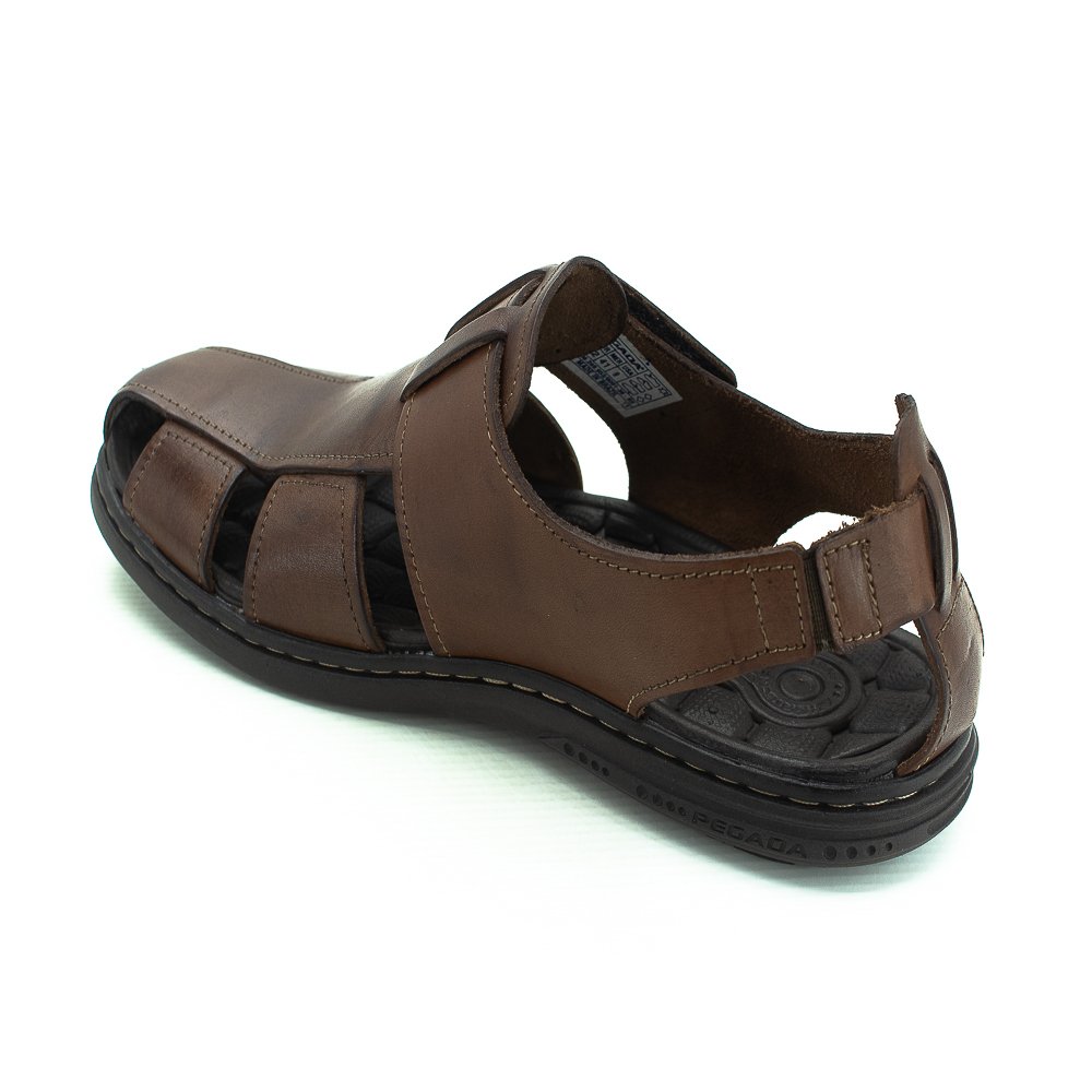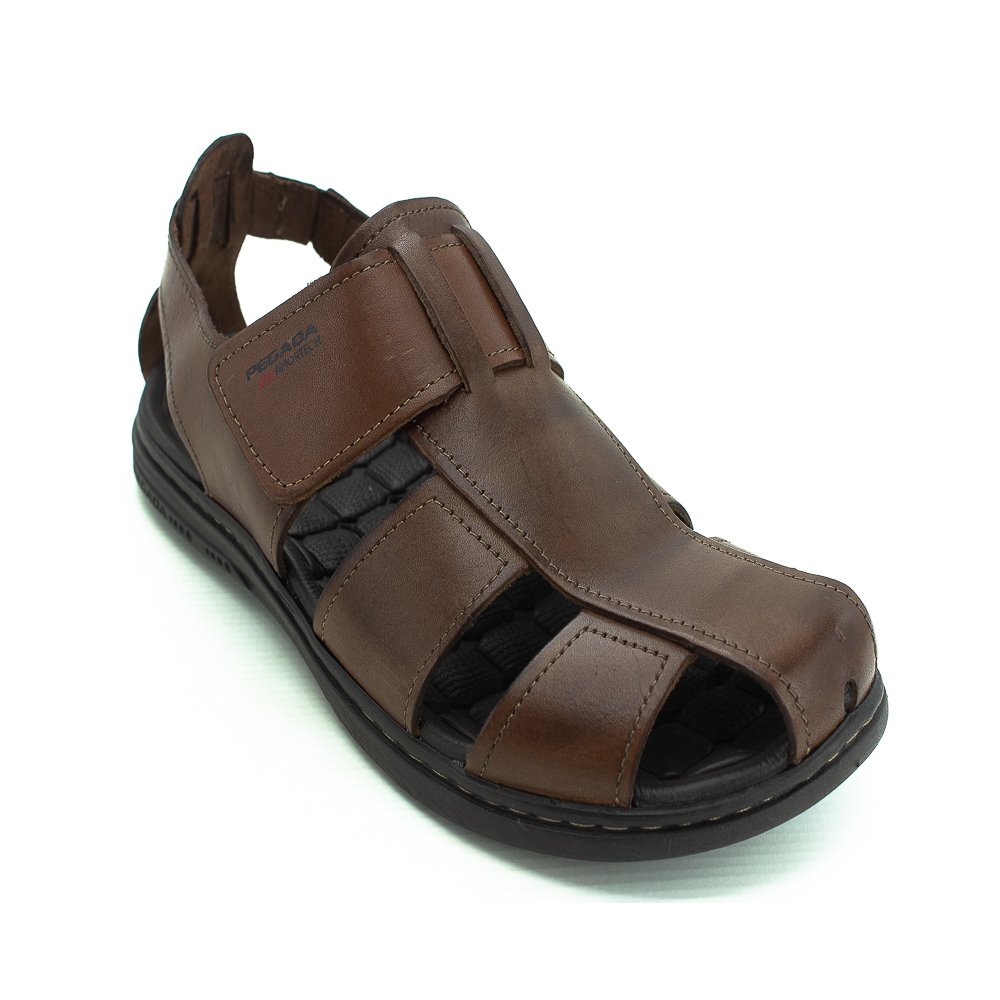 A sandália masculina Pegada é confeccionada com material em couro. Possui alta absorção de suor, mantendo os pés secos e arejados. A palmilha possui gel amortecedor de impactos, e é confeccionada com EVA dublado em tecido que proporciona maior conforto. O solado é leve e flexível, possuindo operação de blaque, que confere maior resistência, e conta sistema de amortecimento AMORTECH, através de tubos absorvedores de impacto.