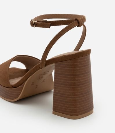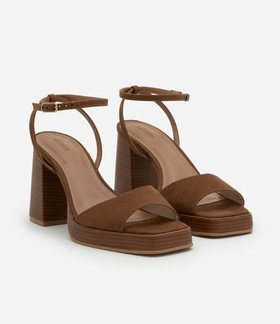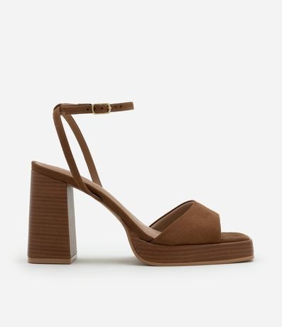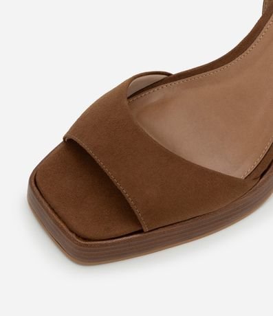 Ref: Sandália feminina modelo meia pata em camurça confeccionada em PU, com salto médio, e bico quadrado.