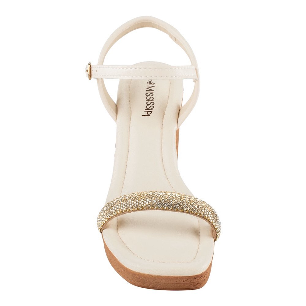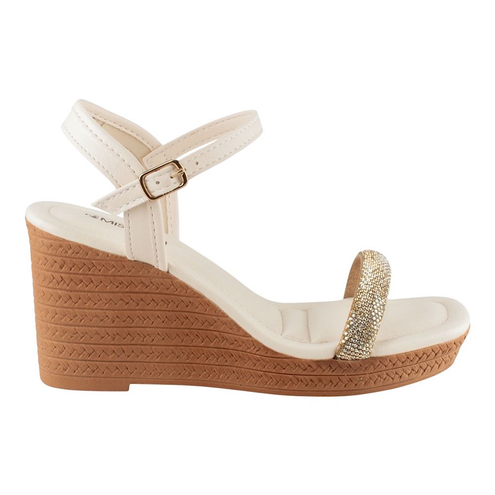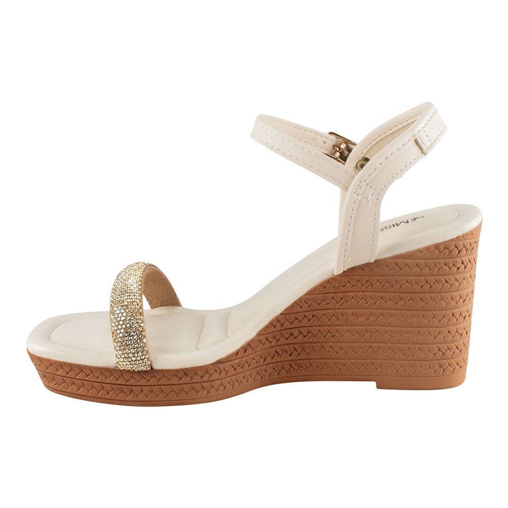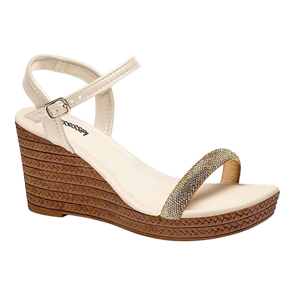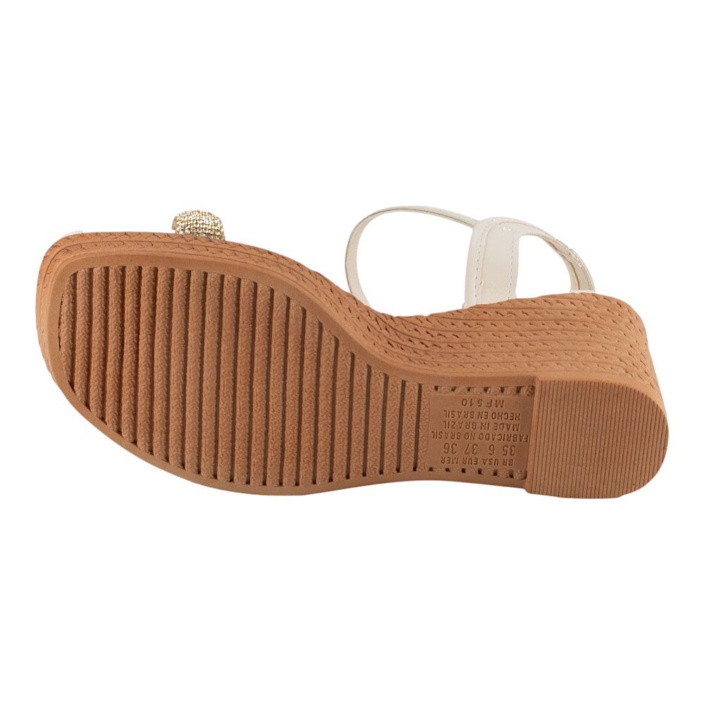 Ref: Perfeita para quem busca unir charme e conforto, a Sandália Anabela Mississipi Latte é o toque de elegância que faltava no seu visual. Seu design delicado destaca a tira frontal com aplicação de brilhos, que acrescenta um toque de glamour sutil e refinado, ideal para compor produções do dia a dia ou momentos mais especiais. O salto anabela de 8,5 centímetros possui textura amadeirada com efeito trançado, garantindo um visual moderno e atemporal. Já o fechamento por fivela no tornozelo proporciona praticidade e ajuste seguro, valorizando o conforto em cada detalhe.