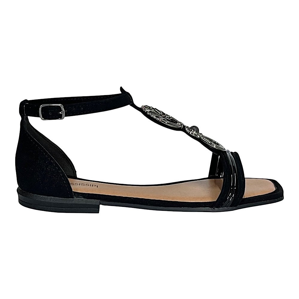 Ref: Com um toque de elegância e modernidade, a Sandália Mississipi Rasteira Preta é a escolha perfeita para quem busca um calçado versátil e sofisticado. O design leve e delicado é valorizado pelas tiras finas e pelo detalhe metalizado prateado no peito do pé, que traz brilho e charme ao modelo. O acabamento em tom preto confere um ar refinado e atemporal, ideal para compor desde produções casuais até looks noturnos com um toque de glamour.
