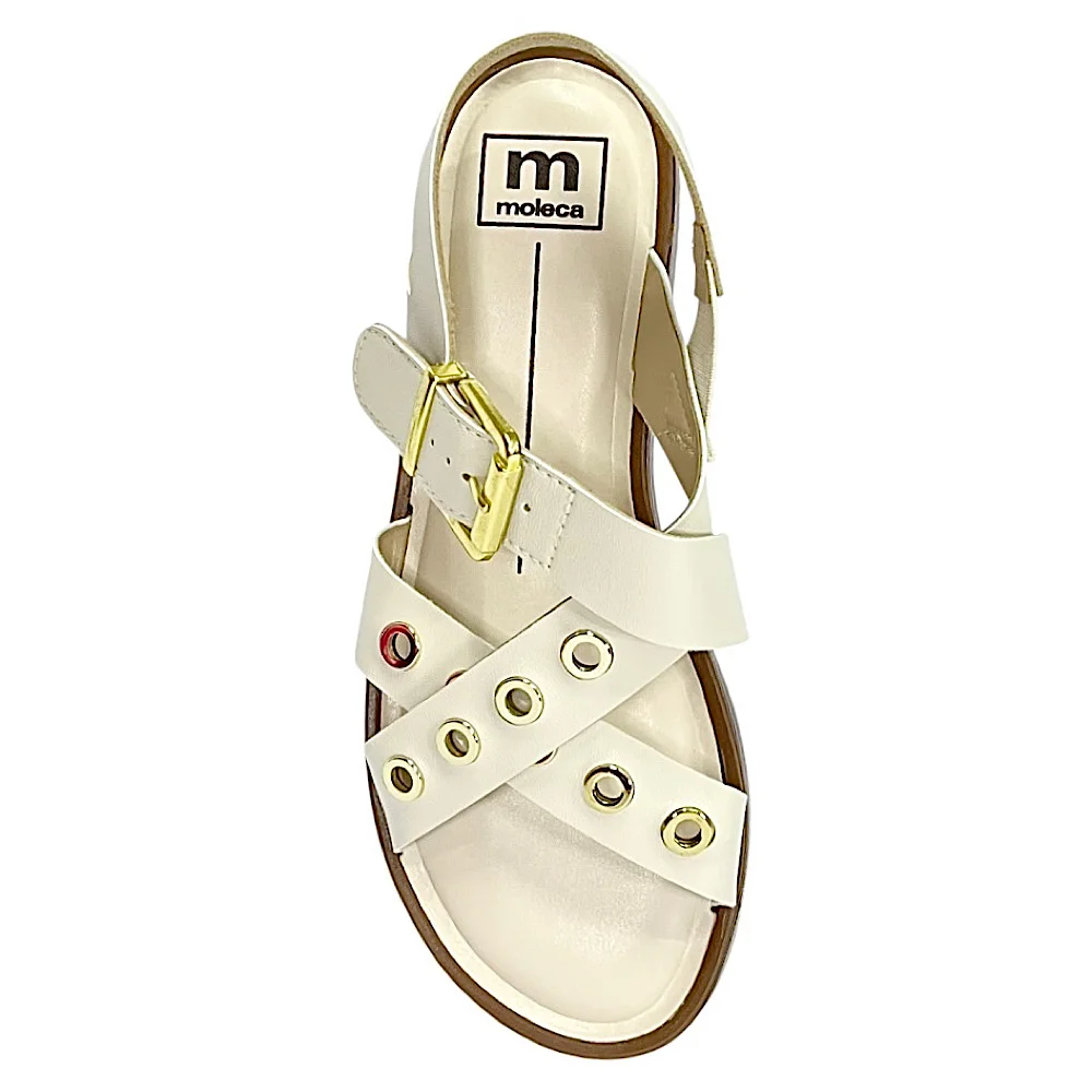 Ref: A sandália rasteira Moleca é perfeita para quem busca estilo aliado ao conforto no dia a dia. Confeccionada em material sintético, traz tiras modernas com aplicação de argolas em dourado que destacam o visual com sofisticação. O fechamento em fivela garante ajuste seguro, enquanto o elástico na lateral interna oferece ainda mais praticidade e conforto ao caminhar. A palmilha em material sintético proporciona bem-estar prolongado, e o solado emborrachado com salto baixo de 1 centímetro assegura leveza e estabilidade.