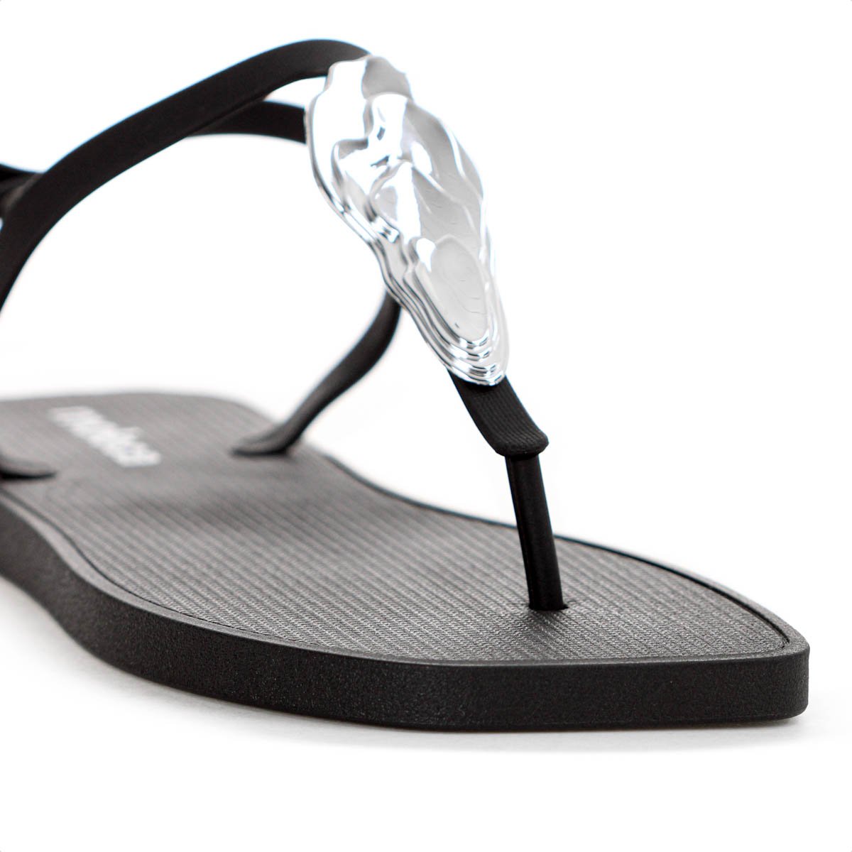 Conteudo da embalagem: 1 par de Sandalia Moleca Tira Pronta C/ Detalhe Preto e Prata - FemininoParte superior do formulario