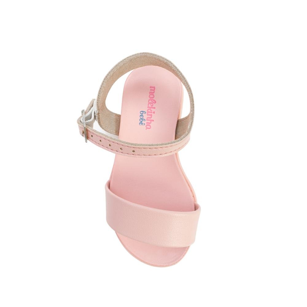 Nome: Sandália Molekinha Baby MK24-27142. Gênero: Menina. Indicado para: Moda - Dia a Dia. Estilo da Peça: Casual. Material Externo: Alternativo. Material Interno: Alternativo. Detalhe: Tira larga macia no cabedal. Fechamento: Fivela ajustável. Palmilha: EVA macia. Solado: Borracha antiderrapante. Peso do Produto: 306 g (o peso varia de acordo com a numeração). Garantia do Fabricante: Contra defeito de fabricação. Origem: Nacional. Código Produto: 04050586. Marca: Molekinha.