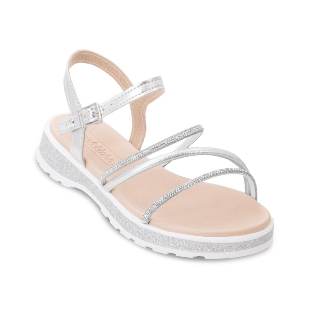 Ref: Encante-se com a elegância e o conforto da Sandália Molekinha Infantil! Confeccionada em material alternativo metalizado, ela oferece um brilho único que vai conquistar o olhar de todos. As tiras finas, delicadamente adornadas com aplicações de strass no cabedal, trazem um toque de glamour para os pés das pequenas. A palmilha em EVA macia garante conforto o dia todo, enquanto o fechamento com tira e fivela assegura um ajuste perfeito. A entressola com detalhe em glitter e o solado antiderrapante em EVA proporcionam estilo e segurança a cada passo. Uma escolha perfeita para momentos de diversão e elegância!