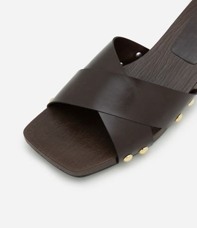 Sandália Mule com Efeito Madeira e Tiras Largas Cruzadas com Tachinhas