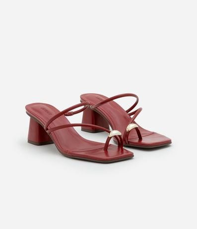 Ref: Sandália feminina confeccionada em material sintético, no modelo mule com bico quadrado, dedeira com detalhe bold, alças finas e salto bloco médio.