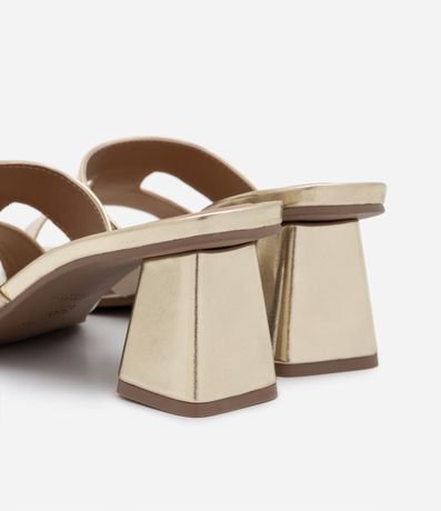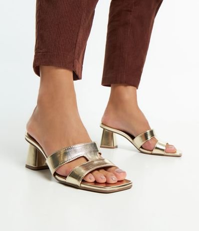 Ref: Sandália modelo mule sem fechamento, com bico quadrado, tiras H no cabedal e salto médio grosso.