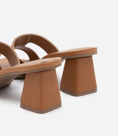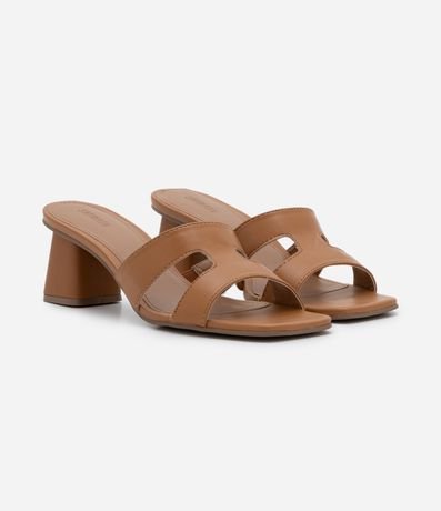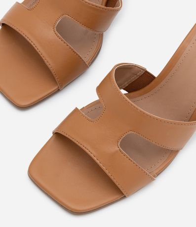 Ref: Sandália modelo mule sem fechamento, com bico quadrado, tiras H no cabedal e salto médio grosso.