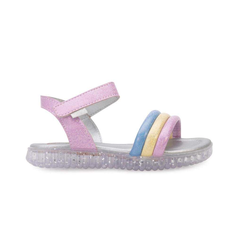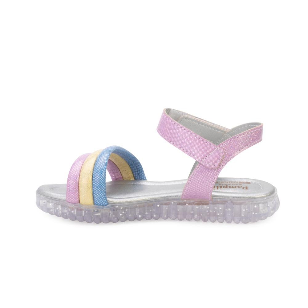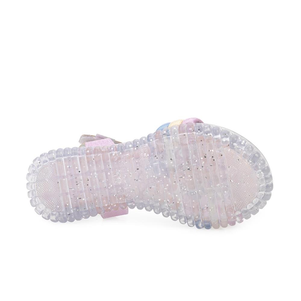 Ref: A Sandália Molekinha Infantil é versátil e combina com vários looks, desde os mais divertidos até os mais elegantes. Confeccionado em material alternativo de alta qualidade, possui tiras coloridas com brilhos no cabedal, trazendo muito charme e delicadeza a sandália. Fechamento por tira aderente e palmilha anatômica para maior conforto. O solado de borracha transparente possui frisos antiderrapantes para maior segurança ao caminhar.