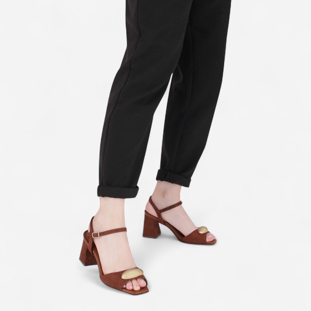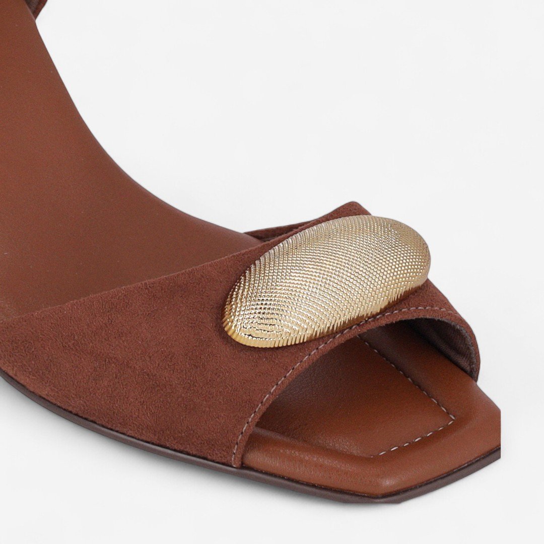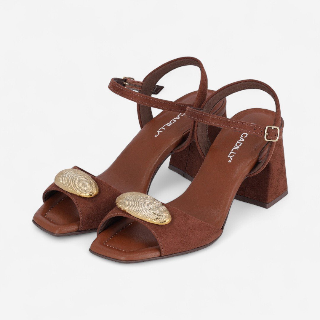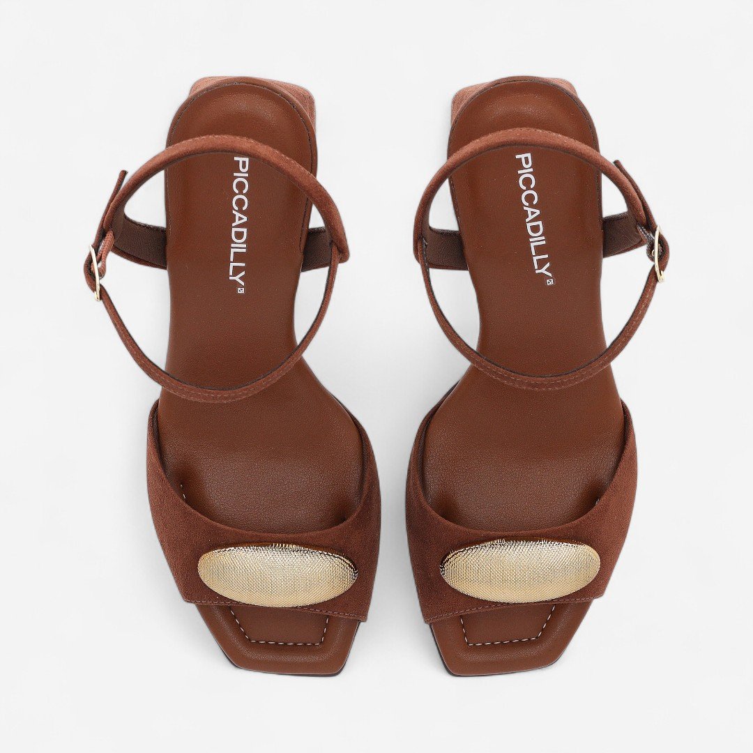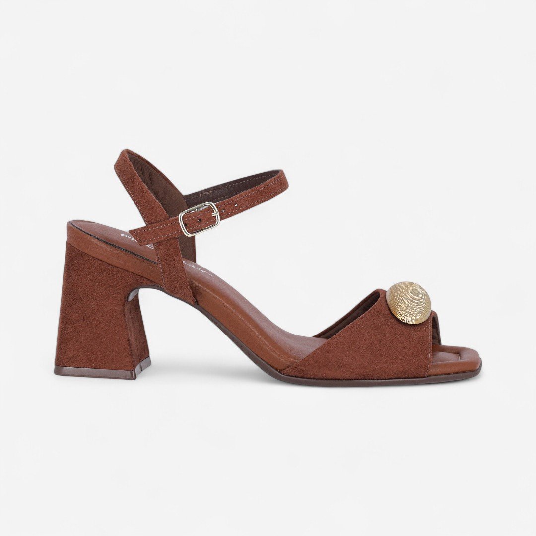 Sandália Piccadilly Salto Bloco Camurça Marrom