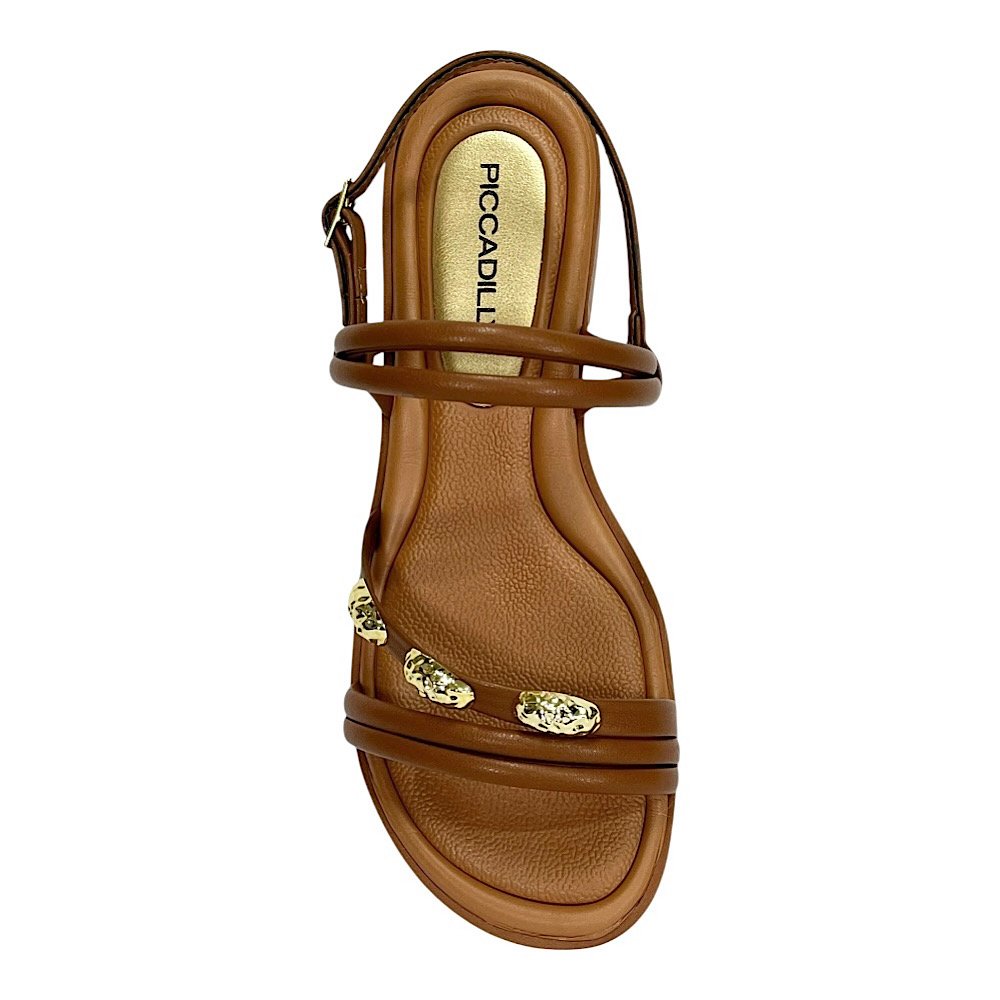 Com charme delicado e toque moderno, a Sandália Piccadilly Taila Salto Baixo Marrom Ocre foi criada para unir sofisticação e conforto em cada detalhe. Confeccionada em Napa Stretch Soft, envolve os pés com suavidade, enquanto as aplicações metalizadas no cabedal dão um ar elegante e atual. Leve e prática, é a escolha perfeita para produções que transitam com naturalidade do trabalho ao lazer.