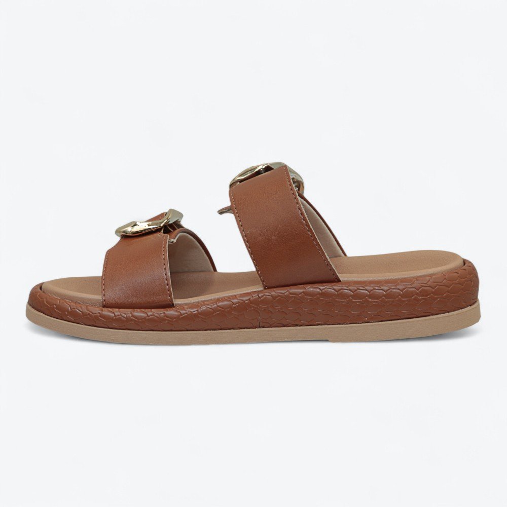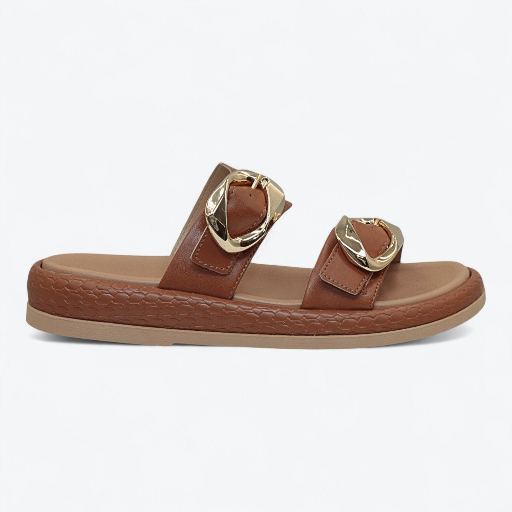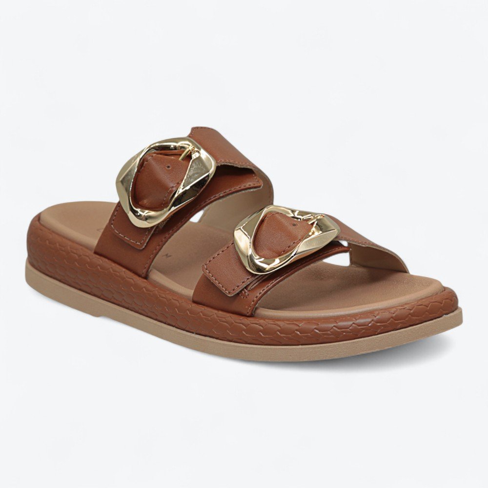 Ref: A papete da Ramarim é a escolha ideal para quem busca conforto aliado a um visual moderno e estiloso. Com duas tiras largas no cabedal, o modelo se destaca pelas fivelas maxi com acabamento metalizado, que garantem um toque de sofisticação e personalidade ao look.