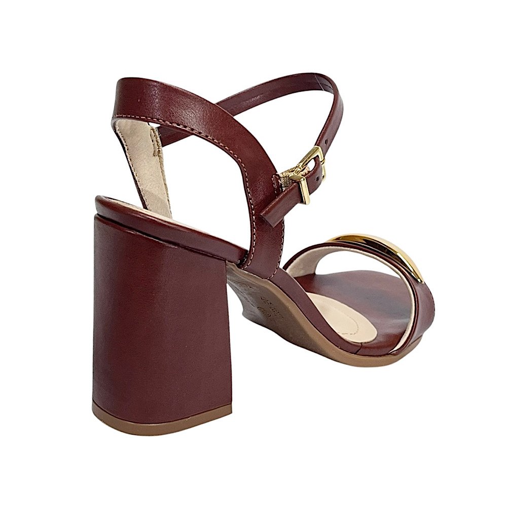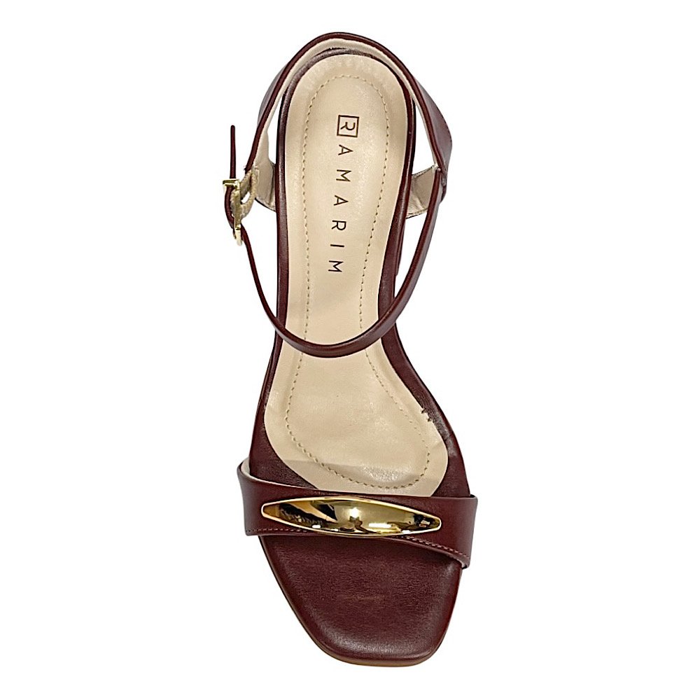 Ref: A Sandália Ramarim Rum é a combinação ideal entre elegância e conforto, perfeita para quem valoriza sofisticação em cada detalhe. Produzida em material sintético de alta qualidade, apresenta acabamento em tom marrom avermelhado, que realça o visual e transmite personalidade. Seu design moderno com tiras finas e delicadas valoriza o pé, enquanto o detalhe metalizado dourado na tira frontal adiciona um toque de brilho e requinte. O salto bloco de 8,5 centímetros garante estabilidade e conforto ao caminhar, tornando-a ideal para o trabalho, eventos sociais ou momentos de lazer com estilo.