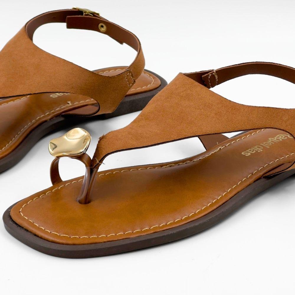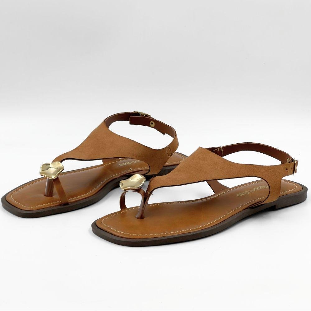 Ref: Sandália Rasteira Feminina com Metalizado Raquel Dias