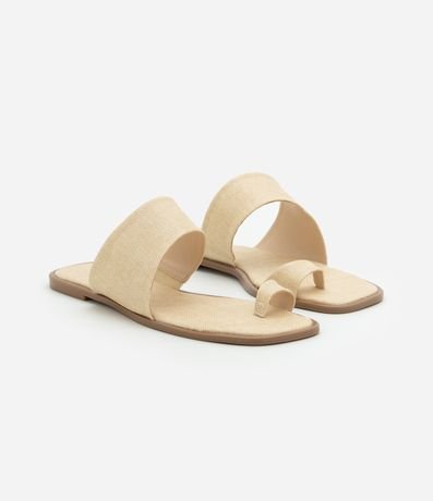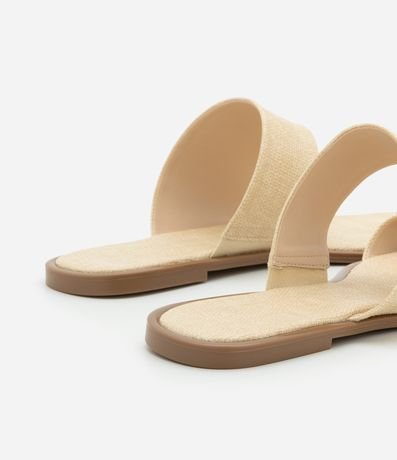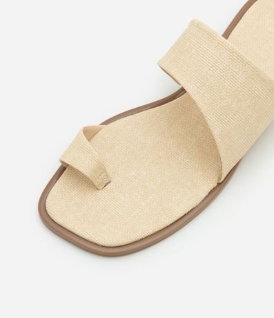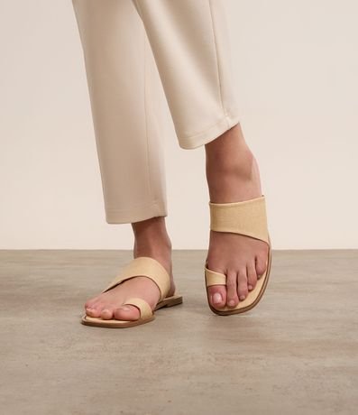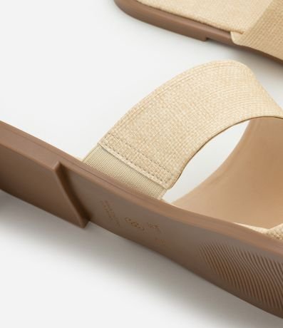 Ref: Sandália feminina confeccionada em material sintético bico redondo com dedeira, tira larga, com sola contrastante e efeito ráfia.