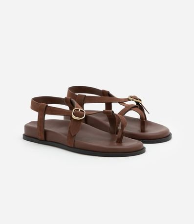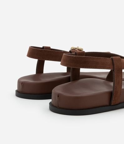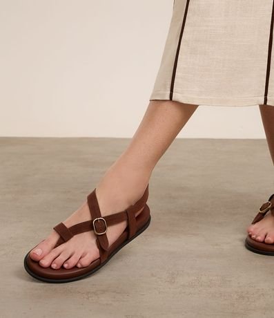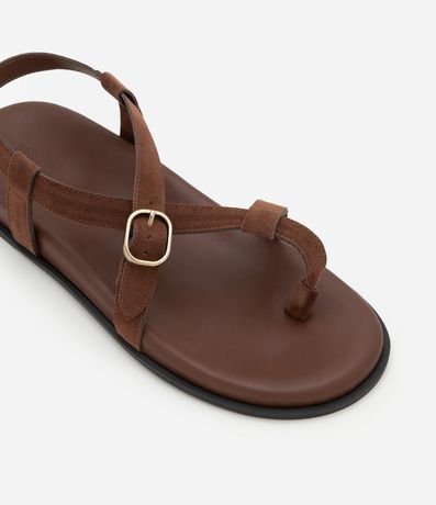 Sandália Rasteira com Tiras em Camurça e Detalhe no Dedo