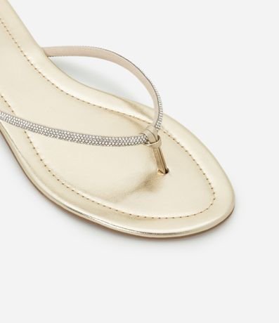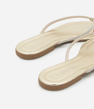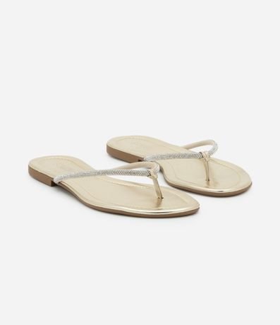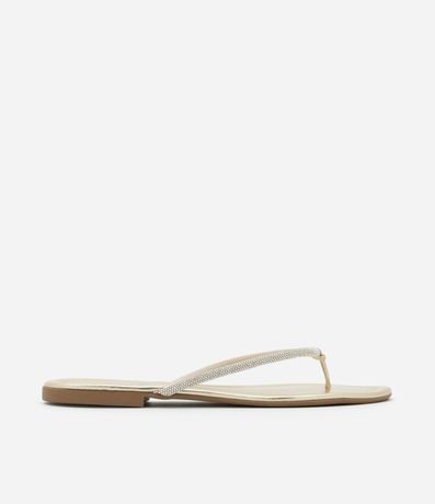 Ref: Rasteirinha feminina modelo chinelo, com tiras finas cobertas por strass, bico redondo e sem fechamento.